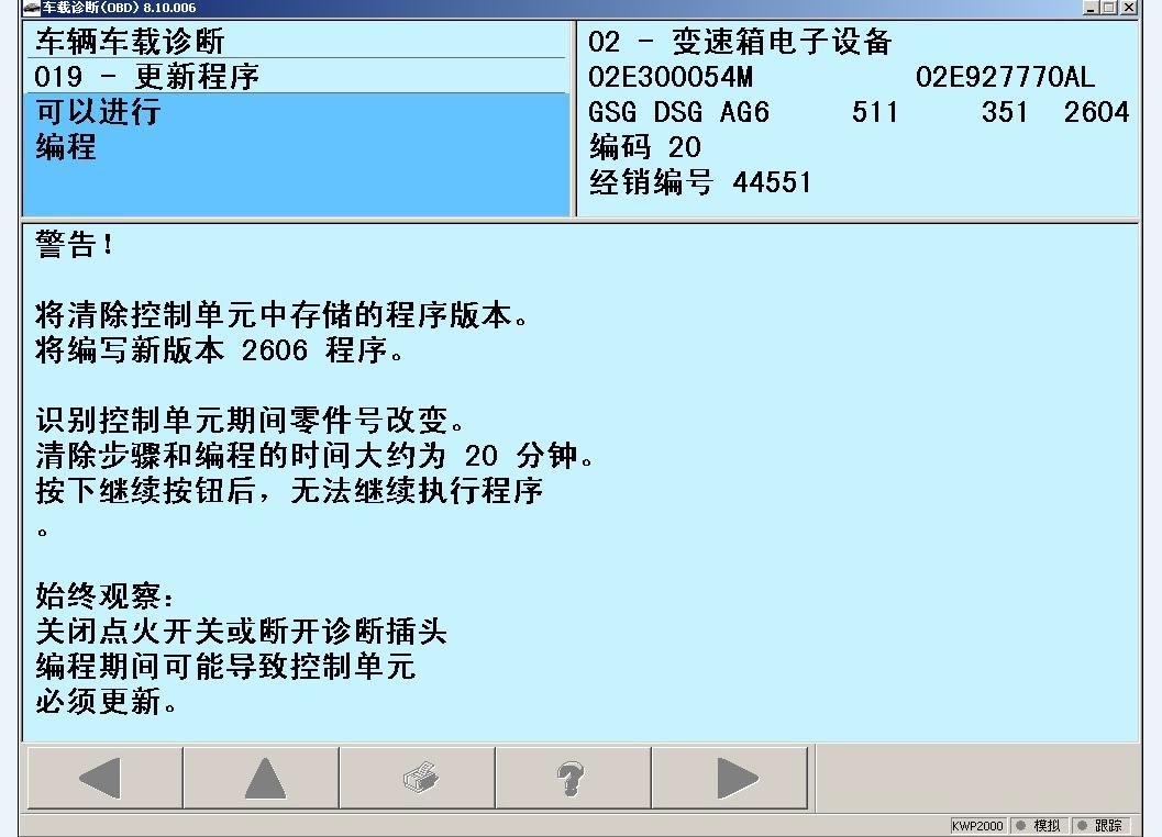迈腾2.0T DQ250变速箱软件错误导致D或S档时仪表上没有档位数字显示,行驶功能不受影响,也没有报警和故障记忆。